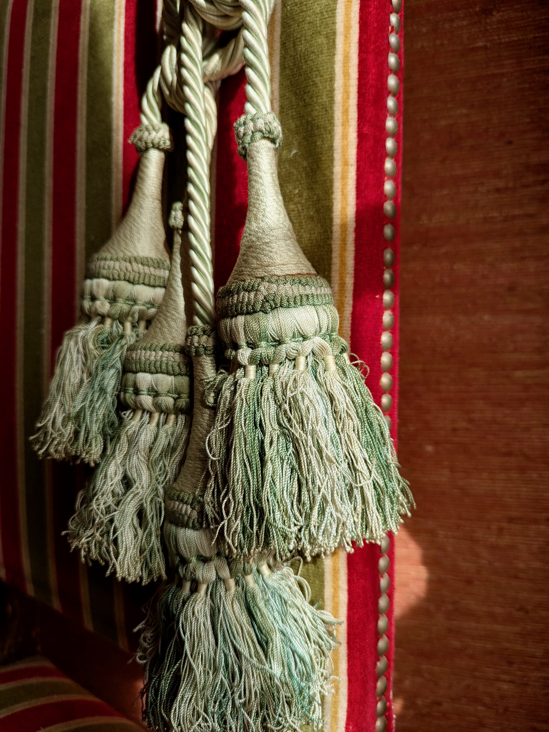 large Pair of Antique Chateau curtain tie backs with tassels